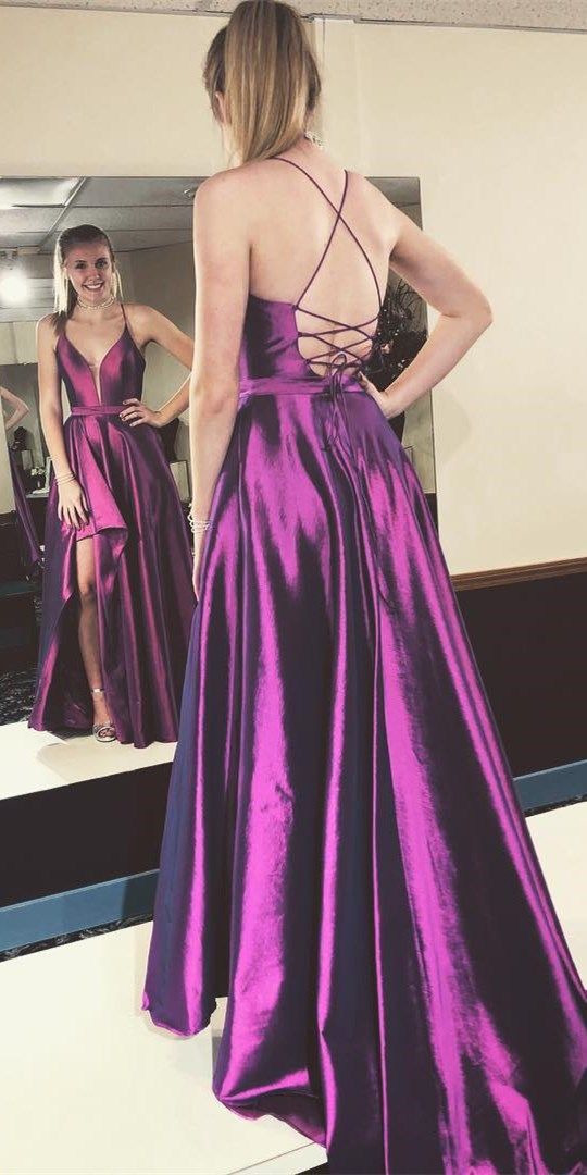 FYD 711,purple taffeta long prom dress with lace up back and side slit/ friday dresses in new fashion
