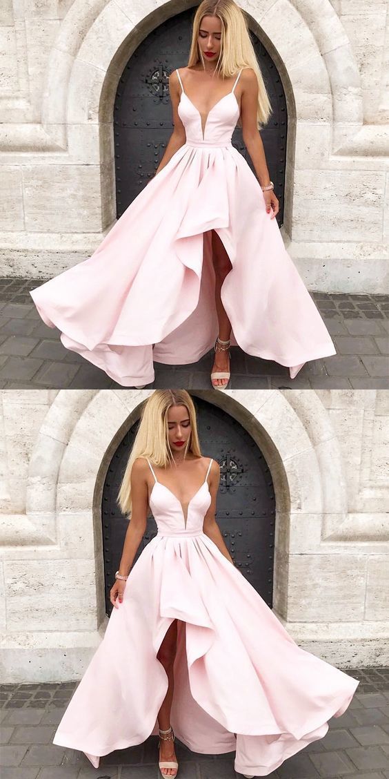 FYD 718,A-Line Spaghetti Straps Pink Asymmetrical Prom Dress/ friday dresses in new fashion