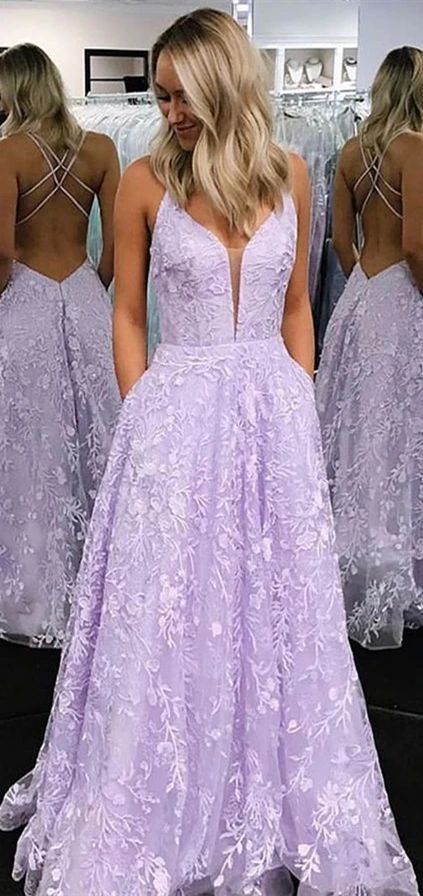 FYD 758,Straps Long A-line Lilac Lace Prom Dresses, Lovely Prom Dresses, 2020 Prom Dresses/ friday dresses in new fashion